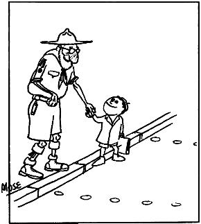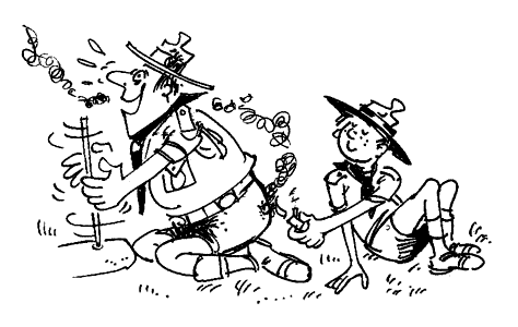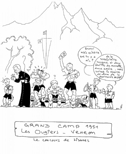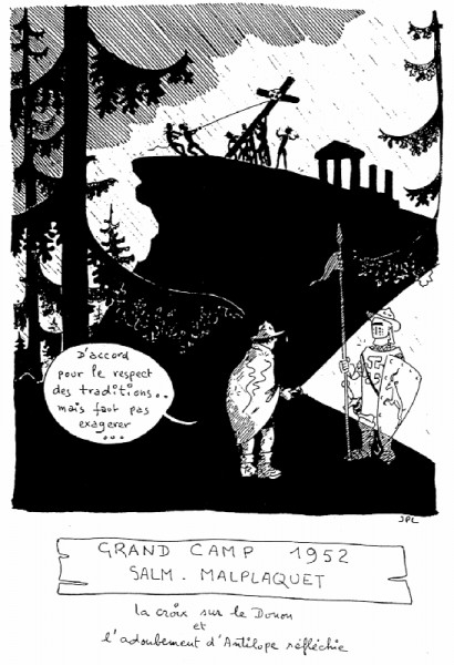 Nous vous présentons quatre scènes de vie scoute vues par notre joyeux luron J.P. Liron. et à leur suite cinq planches de 4 totems chacune.