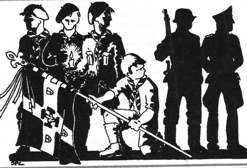 Très beau dessin, rappelant que le scoutisme clandestin était toujours vivant malgré l'interdiction.