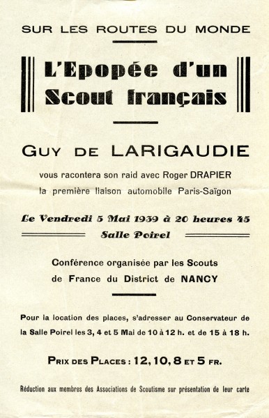 Routier - Scout de France, écrivain, explorateur qui a réalisé, avec son ami Roger DRAPIER, un raid Paris-Saigon en 1937-1938 (Première liaison automobile entre les deux villes) . Le point de départ de cette aventure fut le Jamboree de VOGELENZANG.