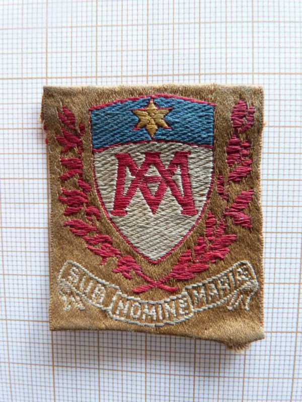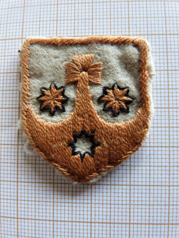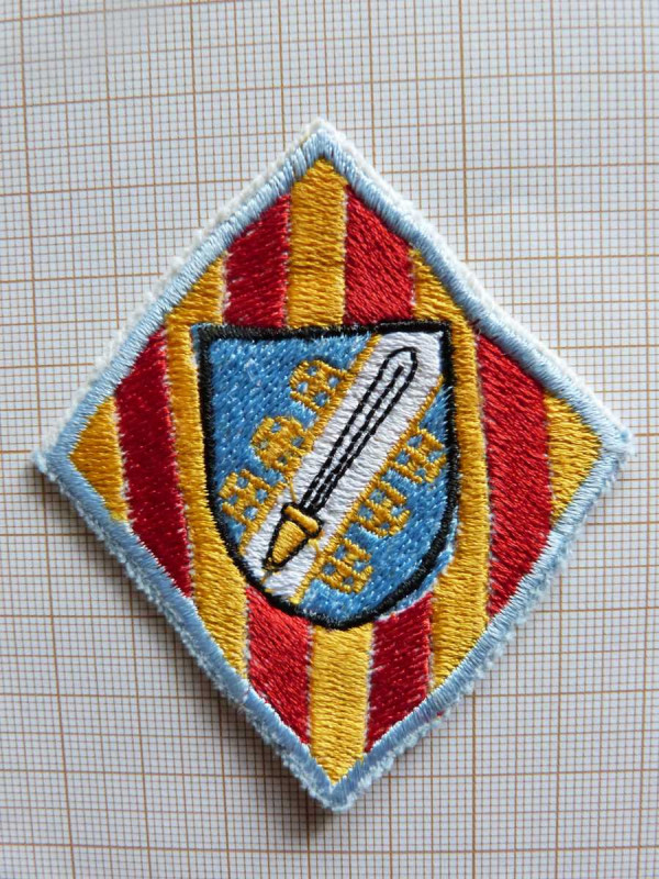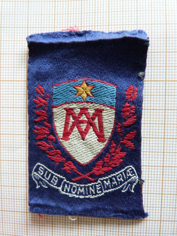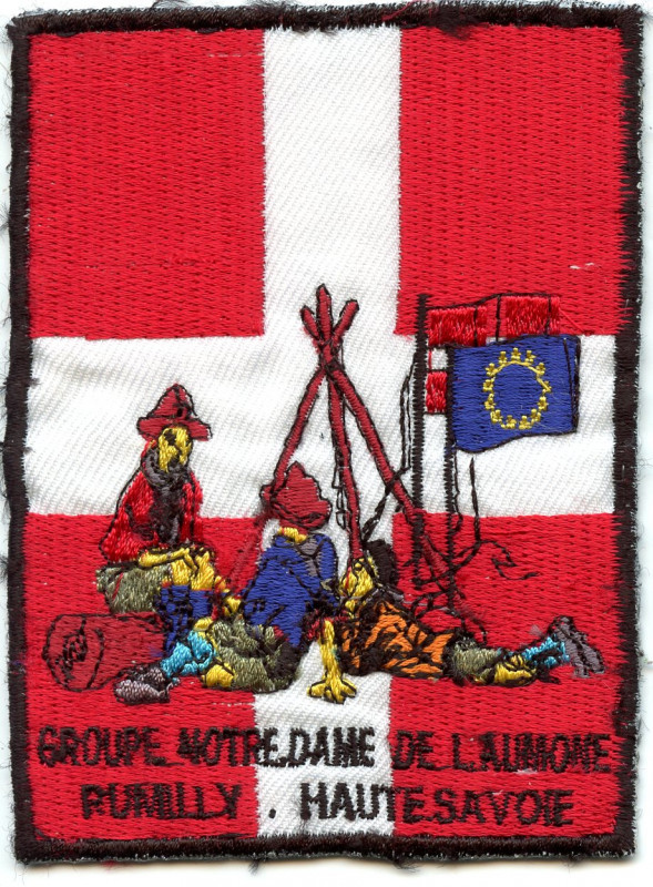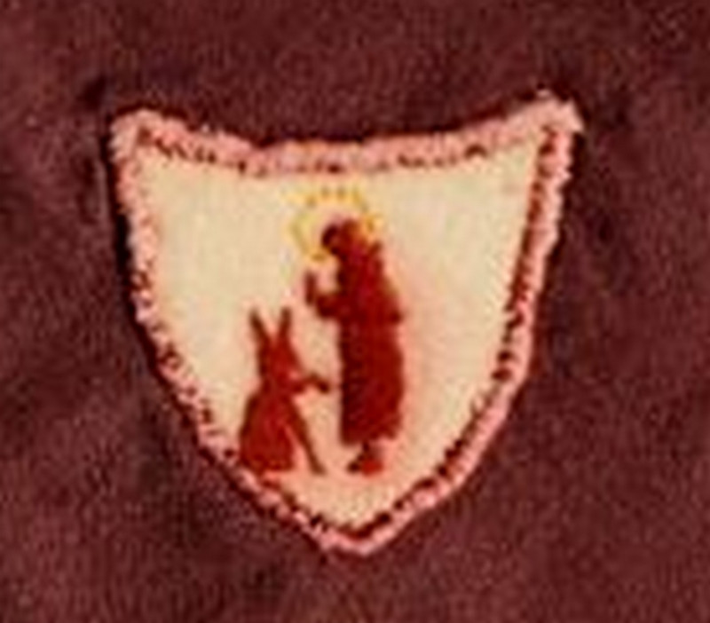 "Connaissez-vous cet insigne? Probablement pas. Seuls les anciens Scouts de France pourront répondre a cette question. Cousu sur un foulard brun-rouge, c'est celui de la meute de Louveteaux, de la 1ère Nice - 1ère France, paroisse St Joseph, rue Smoleth. Nice.
