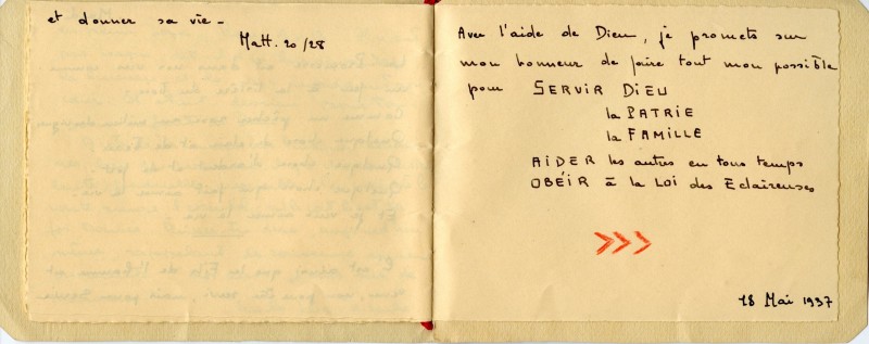 Petit carnet manuscrit d'une Eclaireuse - 1937