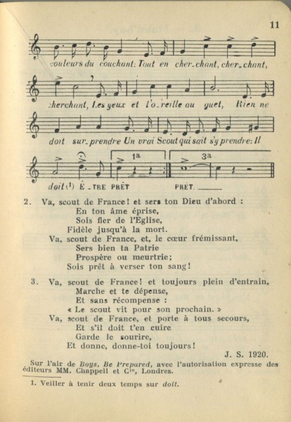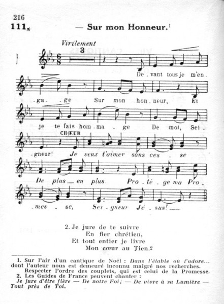nous connaissons par exemple le texte des Eclaireurs de France (1910-1964) :