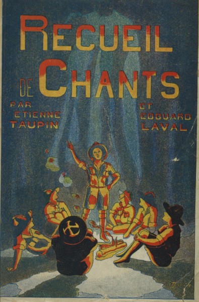 Nous basant sur notre importante collection de recueils de chants scouts, il nous a paru légitime de mentionner ici l'ancien RECUEIL DE CHANTS de TAUPIN et LAVAL , des Eclaireurs de France, dont nous possédons deux éditions des années 1920. On y trouve le chant fédéral des E.D.F. "Toujours tout droit" et de nombreux chants d'époque, mais aussi des "cris d'animaux" inspirés de l'indianisme qui faisait fureur en ce temps là ... En honneur à cet ancétre, nous reproduisons la couverture illustrée, qui fut la même pour les deux éditions.