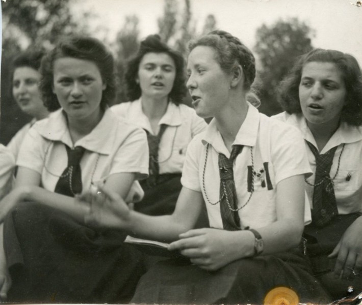 Fleur dirige le chant - son fiancé a été fusillé en juin 44 , juif et résistant.