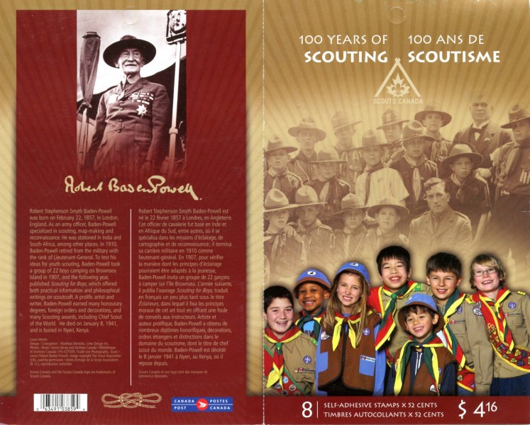 Belle série de timbres canadiens éditée pour le centenaire :