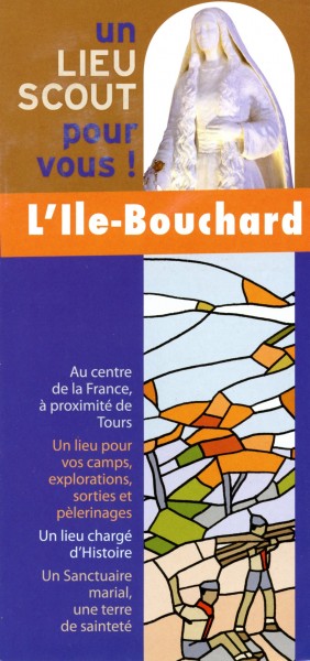 "La chapelle d'adoration et de confession est ornée de 3 vitraux à thème scouts, bénis en 2013 au cours d'une grande journée scoute réunissant les S.G.D.F., les S.U.F., et les G.S.E.
