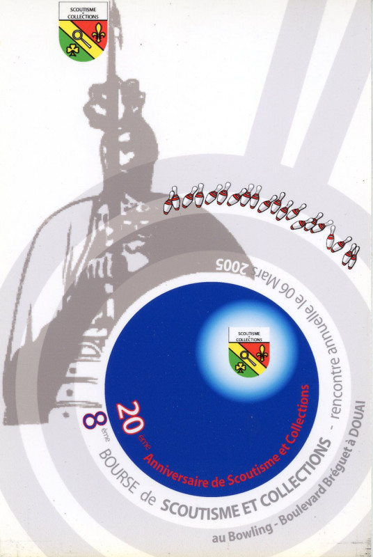 1995 - Carte postale souvenir de la première rencontre des collectionneurs de thème SCOUTISME, salle basse de l'Hôtel de ville de DOUAI (Nord) du 29 avril 1995.