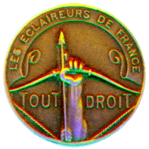 L'insigne de Promesse des ECLAIREURS FRANCAIS est le GAULOIS. Il est en métal émaillé, et fait 36 mm de diamètre. Le Gaulois casqué correspond à la devise "Sans peur". |